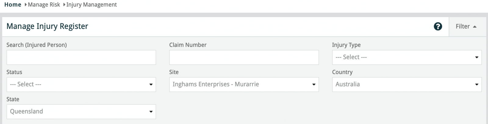 Filter now includes “Site” and “State”. NOTE: State is relevant to the “Site” to which the worker is assigned to as this is relevant to Workers Compensation.