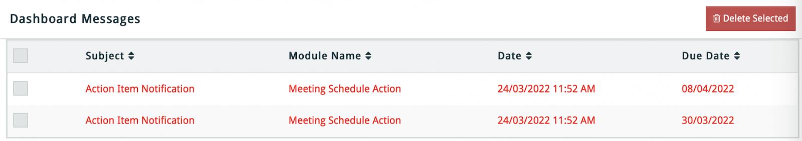 The due date is now included for actions assigned along with wording on the Action Item Notification. Additionally, overdue actions will display in red font.