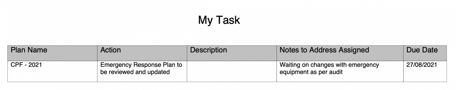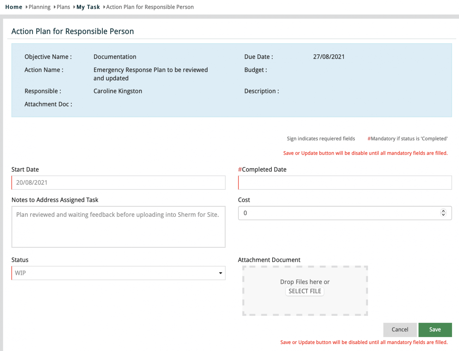 Action Plan for Responsible Person, now includes “Notes to Addressed Assigned Task”. This is to assist the responsible person of keeping track of where they are at when the task is changed to WIP (Work in Progress).
