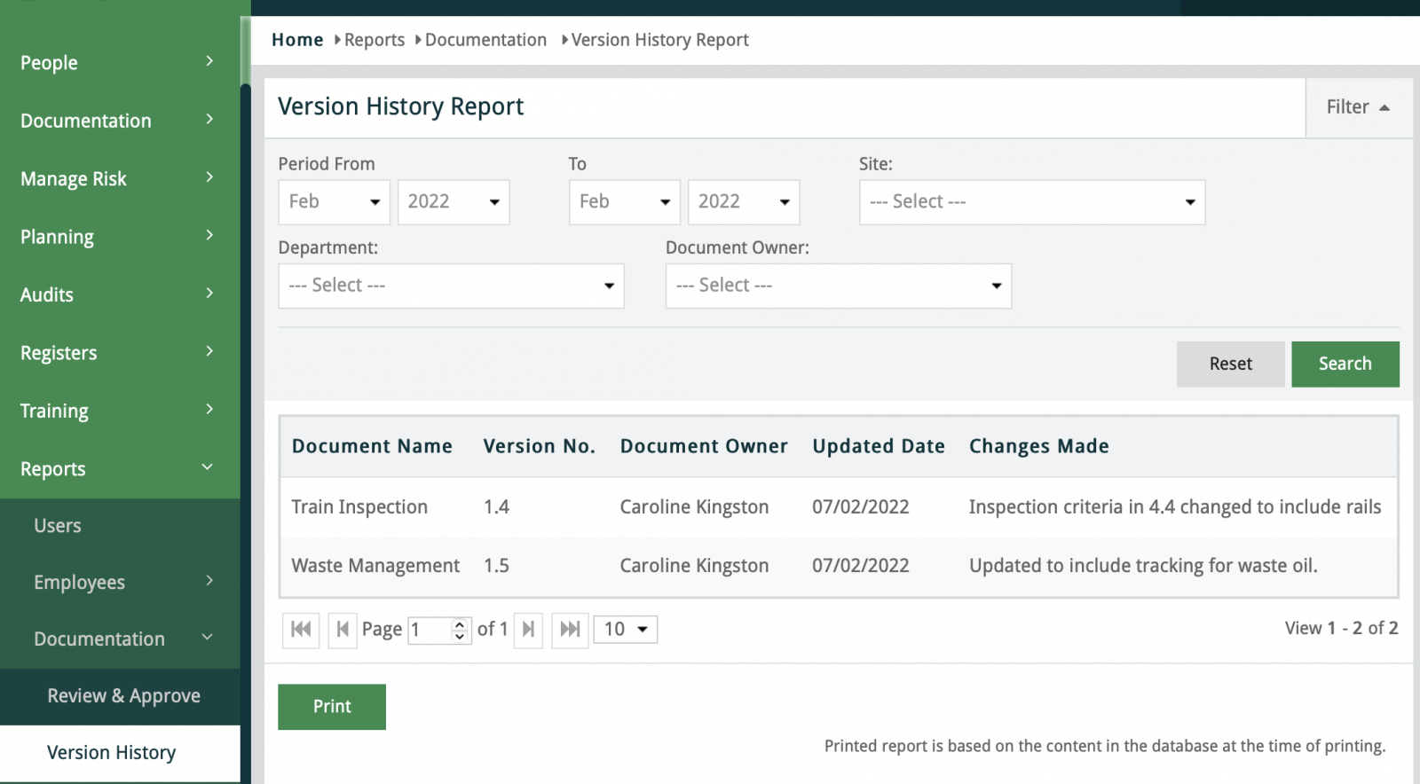 The Version History Report is a standalone report that can be obtained to enable quick updates to your teams on changes that have been recently made.