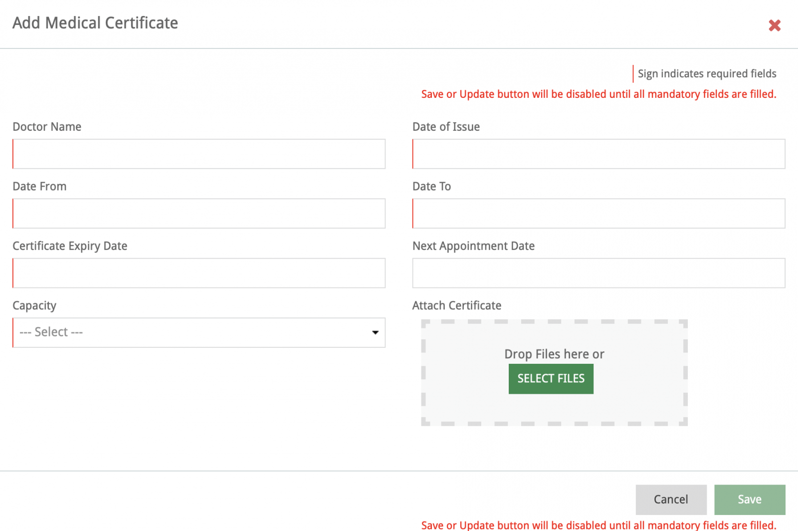 The section to Add Medical Certificate is updated and the table in the Medical information page provides information about the medical certificate.