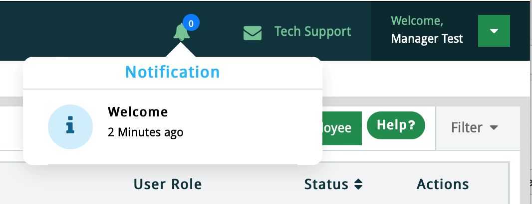The notification will display as below. Need to click on the Bold Text to view – e.g. Welcome