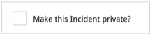 - Incident can be flagged as “Private” meaning it will display for the Reported By and Reported To, along with the System Admin upon being logged.