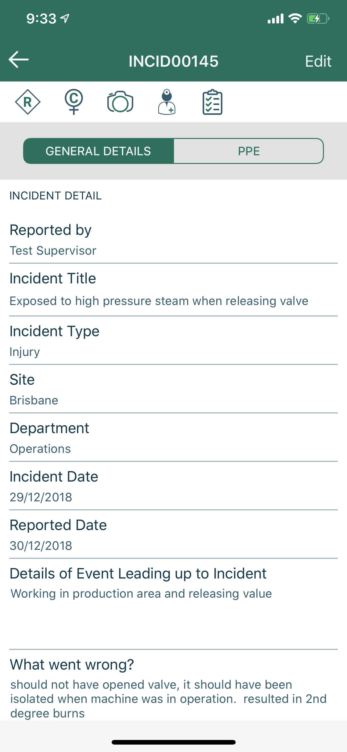 • PPE Requirements – there is now a button for N/A as PPE does not always apply to incidents. Same is available in Sherm Mobile App.