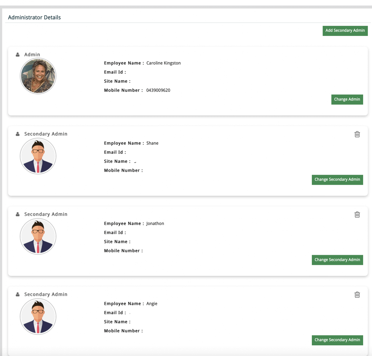 Note: only Admin can Add, Delete Secondary Admins and pass over the Admin to another person.