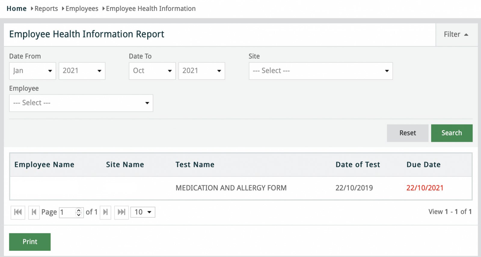 A new Employee Report is available whereby date periods can be selected, or just choose site and/or employee.