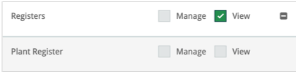 When Registers are selected in the User Role, there is now the function to exclude the Plant Register.